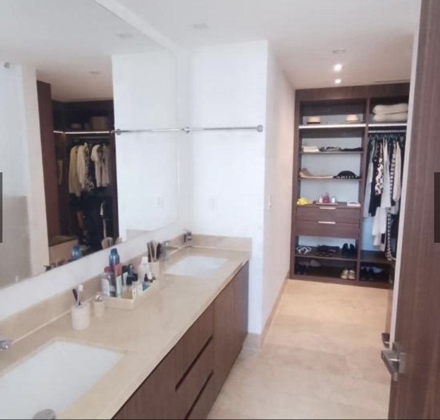 Venta magnifico Departamento Punta del Mar Cancún con 295 m2. Cuenta con acabados de lujo y de excelente calidad, cocina integral abierta con electrodomésticos y espacio muy amplio para la preparación de alimentos, family room y baño completo para visitas, 3 recamaras la principal con acceso a la terraza, baño completo con lavabo doble y un gran vestidor. Las otras 2 recamaras tienen clóset. Área de lavado y cuarto de servicio. Amenidades: gimnasio equipado, jacuzzis, alberca con hermosa vista al mar Caribe, elevador. Excelente ubicación, a unos pasos de la playa, centros comerciales y tiendas de gran prestigio. El departamento con muebles se vende en $23,500,000. Una excelente inversión, en un lugar paradisíaco. Esperamos su llamada, sera un placer atenderle!!