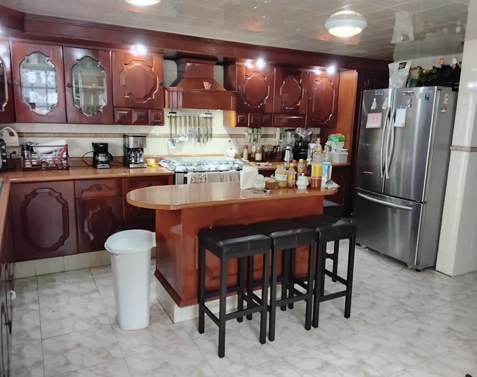 • Cocina integral, barra desayunador y muebles de caoba
